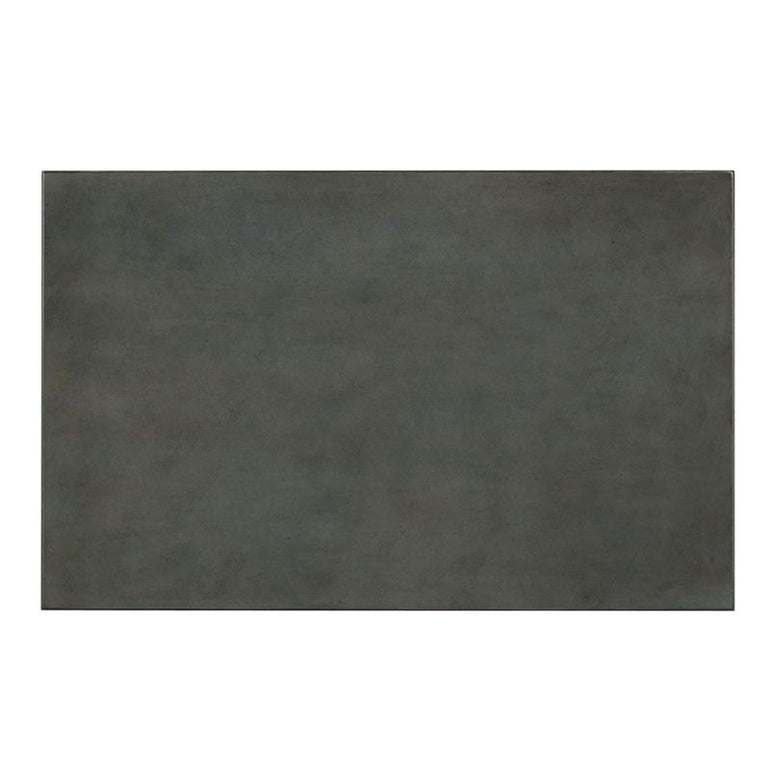 A rectangular chairside table with a tapering square column above a rectangular base.