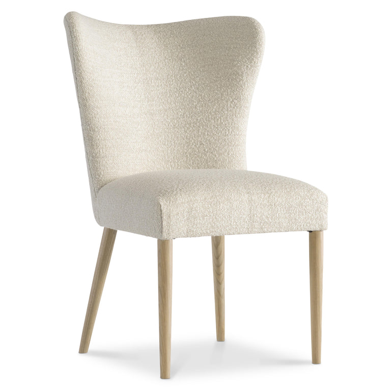 Classic styling from midcentury modern forms is modernized and softened in the Modulum side chair. With a curved back that is inspired by a traditional wing back chair, the shape is feminine and spare. Slim legs in the Sahara finish complete this contemporary look.