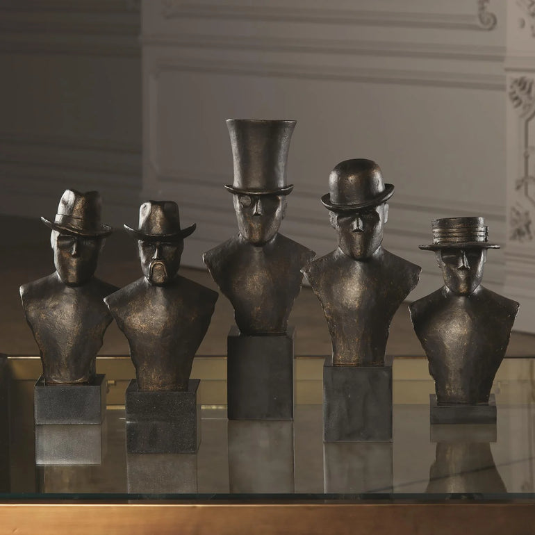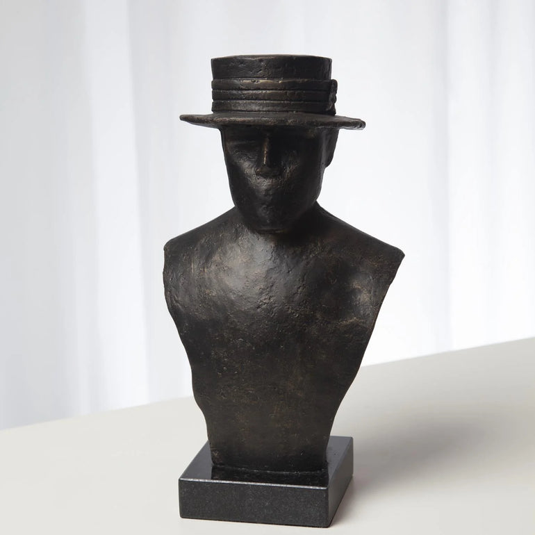 Sculpture artists in northern China hand carve the original models for this item; molds are then made from the original carved models. These are sand casted iron with a dark bronze finish featuring slight golden highlights. The human form, whether traditional or contemporary, from classical times to the present, has always been important in home decor.
