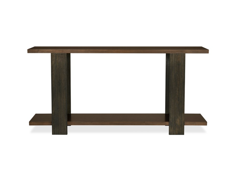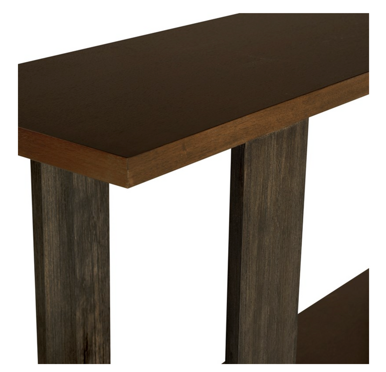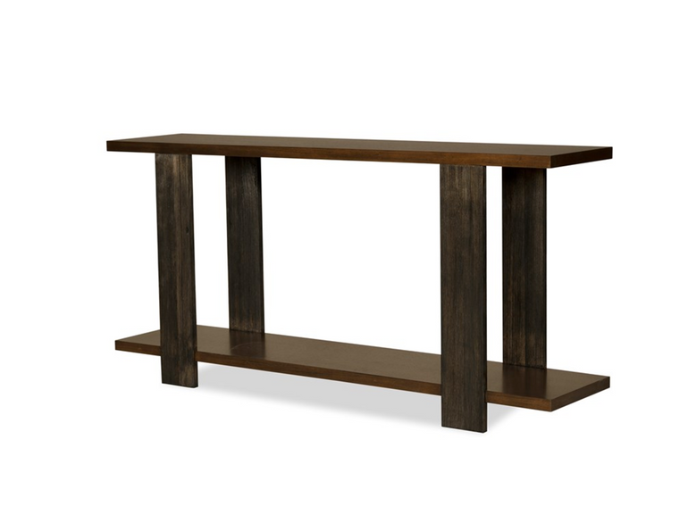 Four Pine legs support a Walnut top and shelf on this console table. The Douglas Fir legs include a sandblasted finish to accentuate the texture of the grain and provide a contrast to the smooth, Walnut veneer.