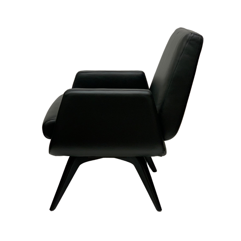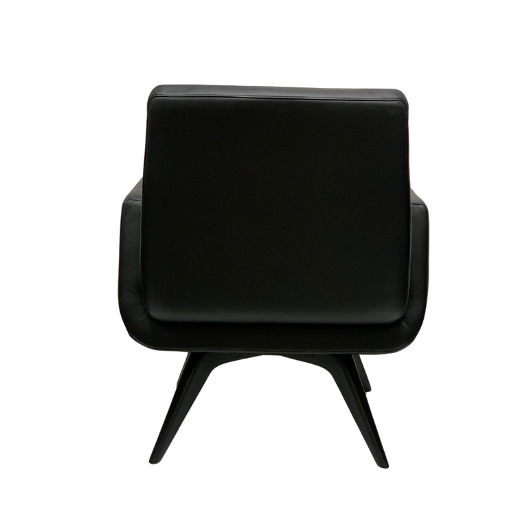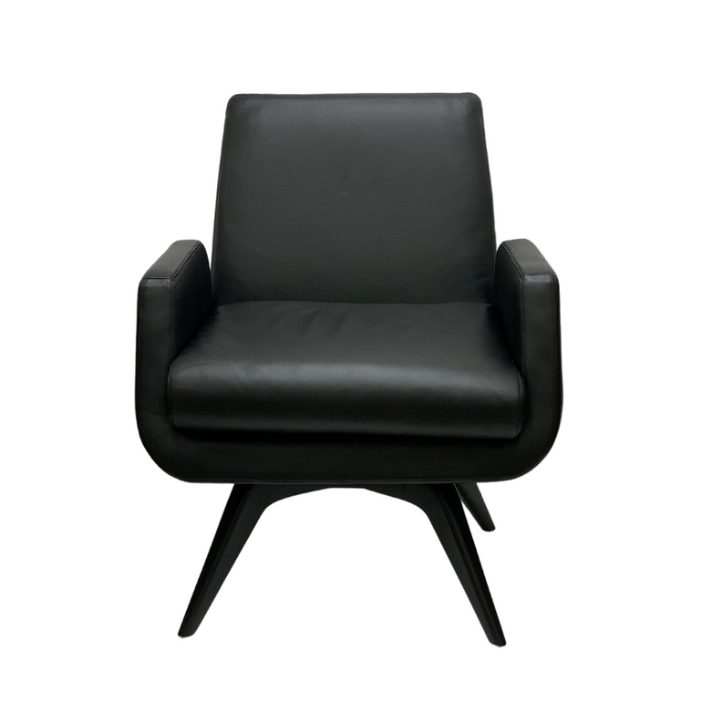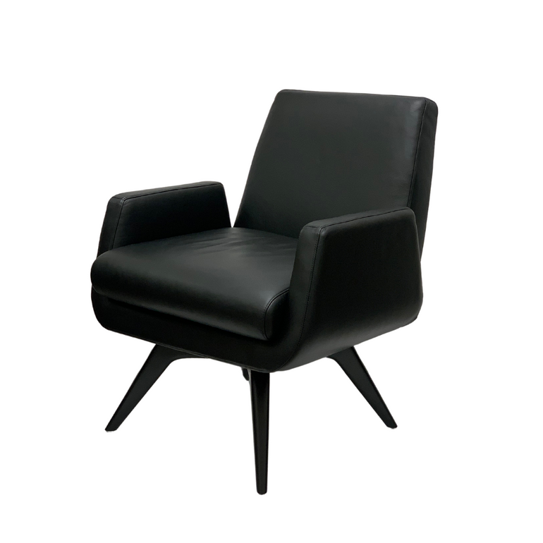 Designed by the renowned John Mascheroni, the Marshall Accent Chair encapsulates the essence of mid-century modern design, beautifully refined to perfection. Crafted with a keen eye for detail, this chair effortlessly combines straight edges with a captivating rounded wooden-cross base, resulting in a look that's simultaneously timeless and edgy.