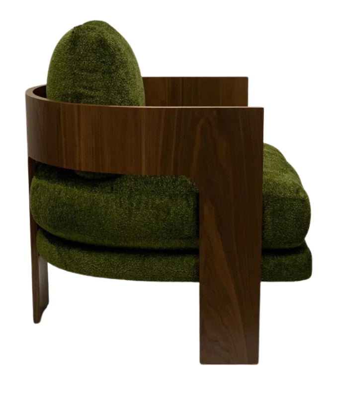 The On 3 (originally conceived in 1970 by Milo Baughman) is an iconic midcentury modern chair design packing lots of dramatic punch in a thoughtfully minimal package. Its striking curvilinear frame is carved to form three, stout legs that support a supple upholstered seat and back filled with trillium and poly blend down. Baughman’s signature glamor is infused into the chair’s dramatic frame in Natural Walnut