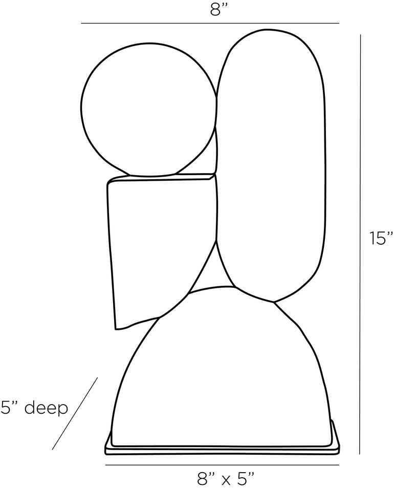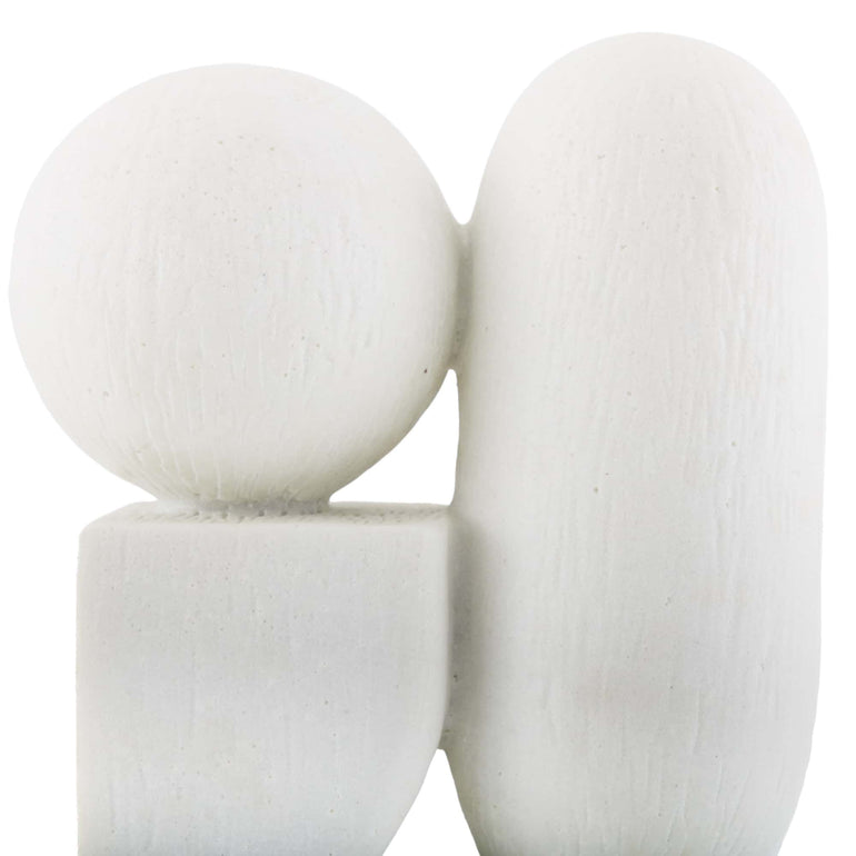 A COMPOSITION OF SPHERICAL, CARVED IVORY RIVERSTONE SHAPES NOD TO THE GEOMETRY OF THE CUBIST MOVEMENT. THE ABSTRACT ART PIECE, WHICH IS POISED ON A FLAT BRONZE STEEL BASE, IS A COLLECTION-WORTHY ADDITION TO ANY ROOM. RIVERSTONE WILL VARY.