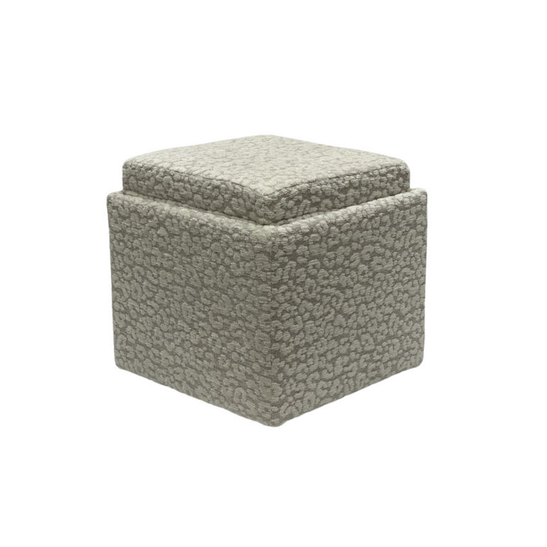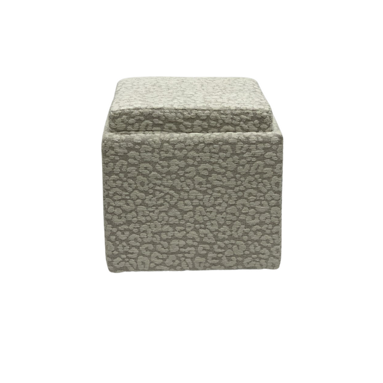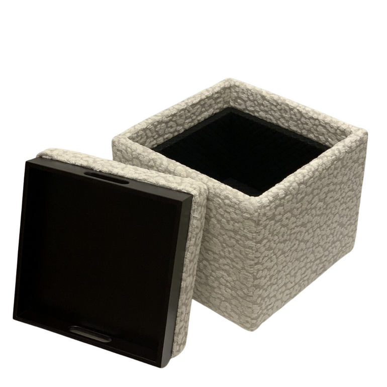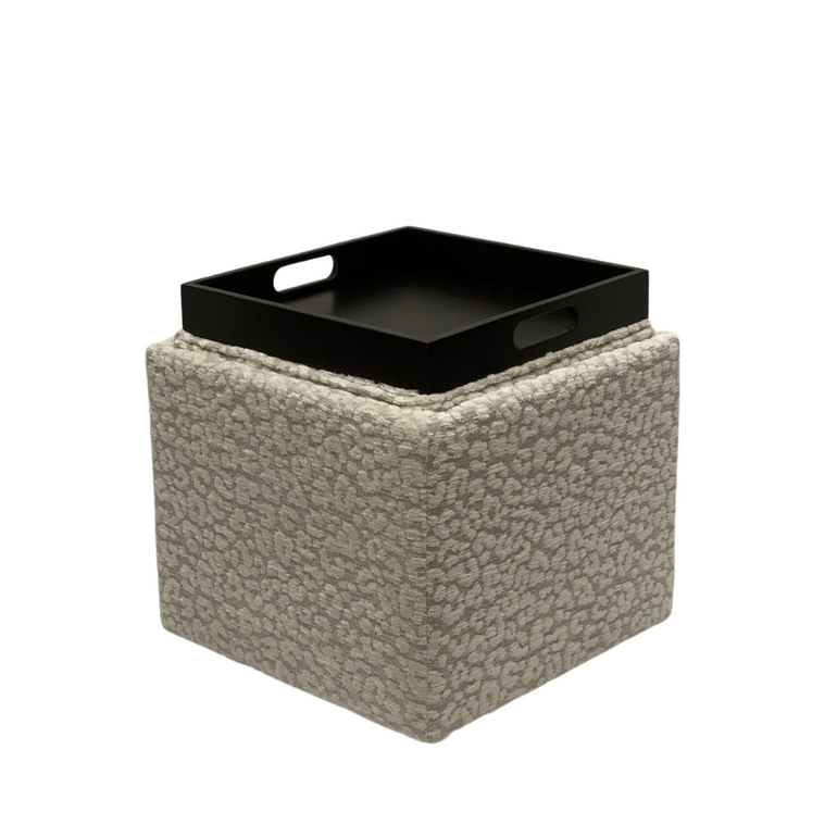 Leopard Beige Storage ottoman with casters and a Acorn finish tray
