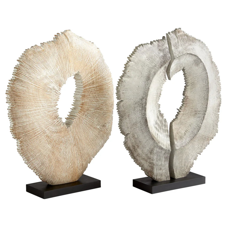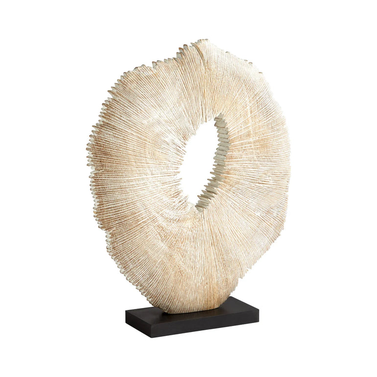 "The Winona sculpture is made from Ardu wood and bears the natural shape of a tree ring. The texture etched into the soft, white cream wood gives this piece of art a light and sophisticated energy. The live edges throughout take the imagination to a place of peace, comfort, and wholeness."