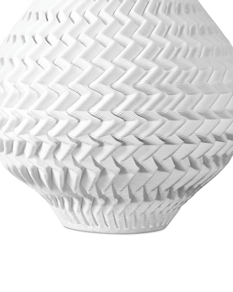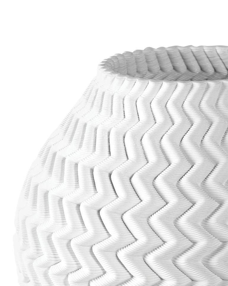 Intermingling the past and the present, the Plisse Small Vase is made of 3D-printed porcelain to place it at the crossroads of the ancient and futuristic worlds. The fact that a machine fashioned it looks forward; while the kiln in which it was fired just as it would have been centuries ago, looks back. The result is a contemporary white vase that reads like a masterpiece made by hand.