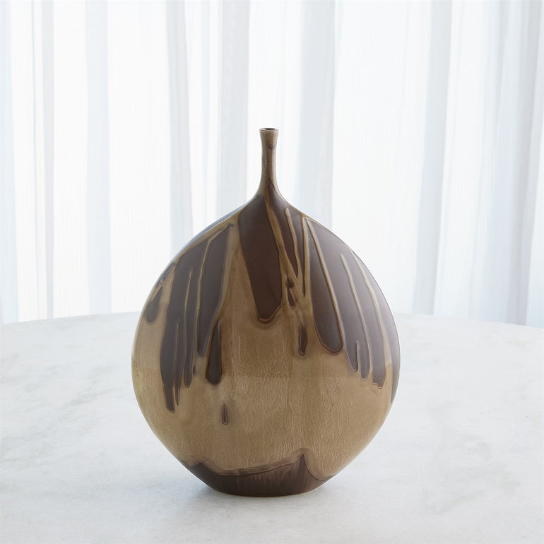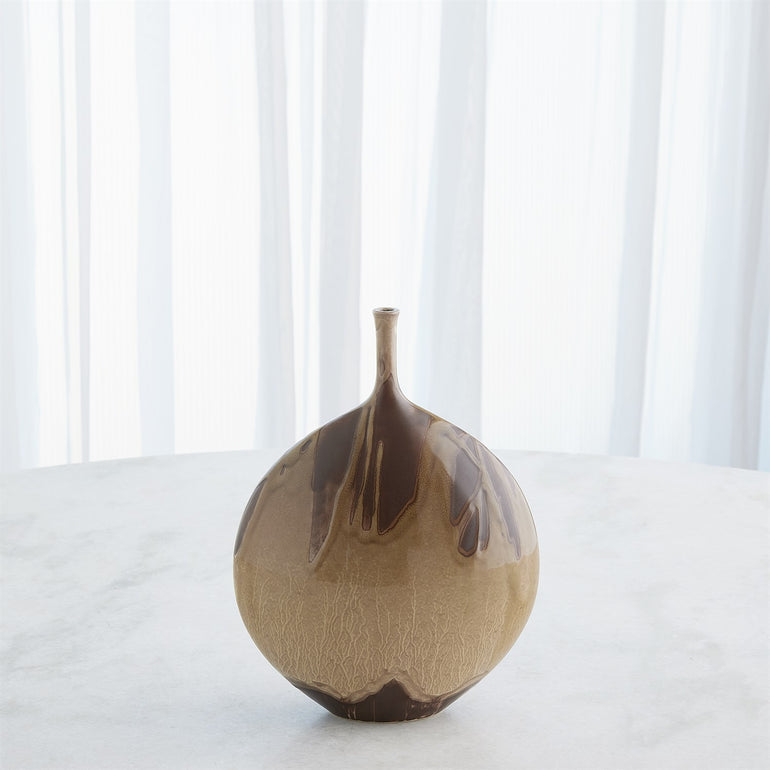 The Splash Bottles are crafted from slip-molded Portuguese ceramic in a rich earthy umber tone, featuring a stunning camel-colored reactive glaze. Variances in the finishes arise naturally from the reactive glazes and handmade craftsmanship. We celebrate these differences, as they give each piece its unique character, making them truly one-of-a-kind creations.