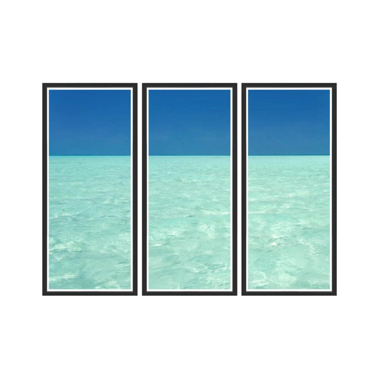 Without a blot on the horizon, this seascape offers a crystal clear window to warm waters and open skies. The disturbed surface of the ocean contrasts with the velvet texture of the sky, with ripples and highlights stretching as far as the eye can see. A modern backdrop to a world filled with everyday chaos, the bright colours of the photo compliment the calmness and open space of the seascape.
