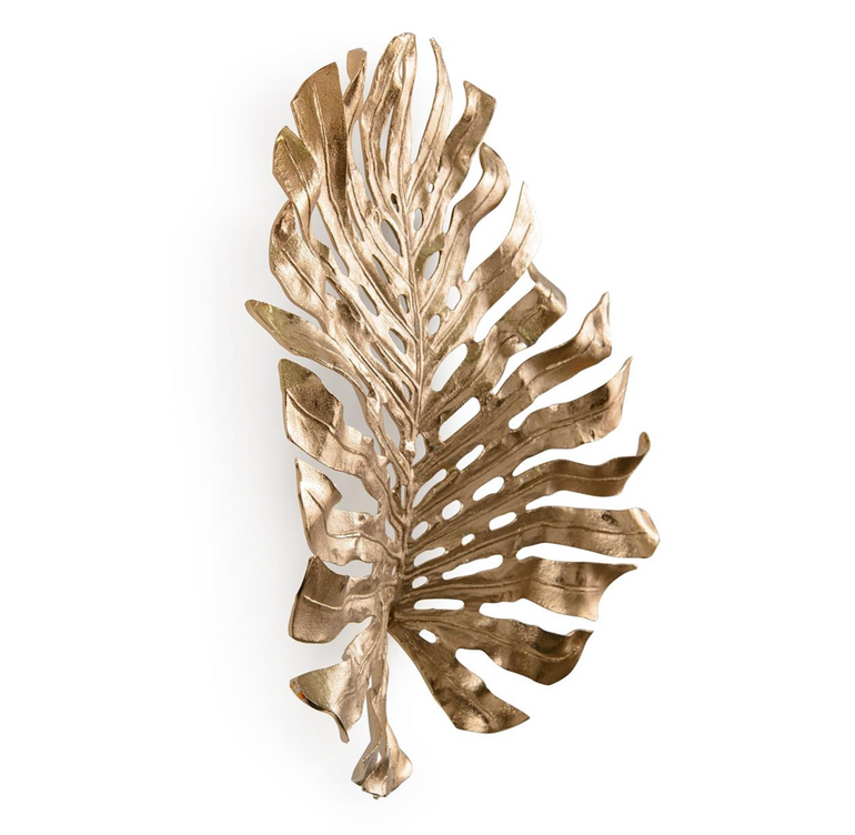This naturally inspired aluminum sculpture showcases gorgeous asymmetry and alluring organic curvature that is greatly elevated through meticulous gilding. Displayed in a stunning shade of Champagne Gold, the piece achieves a delicate balance between opulence and natural wonder. A stunning work of art on its own, the Gilded Palm Leaf truly shines brightest when arranged alongside its smaller variants to complete the look.
