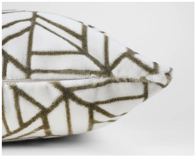 Add some luxury to your living space with this stylish and high-quality velvet pillow. Designed with a chic white and gold geometric pattern, it's sure to elevate any room's décor. With an identical front and back, this pillow will look good from any angle.