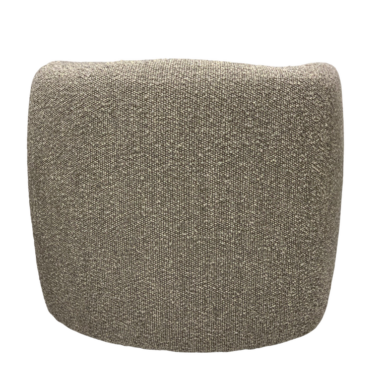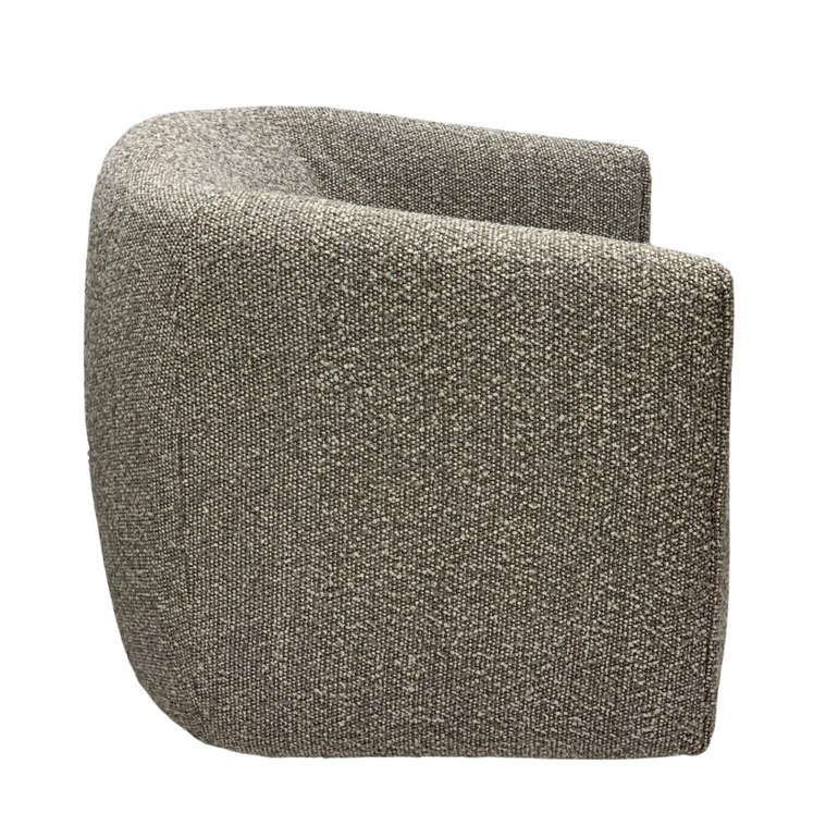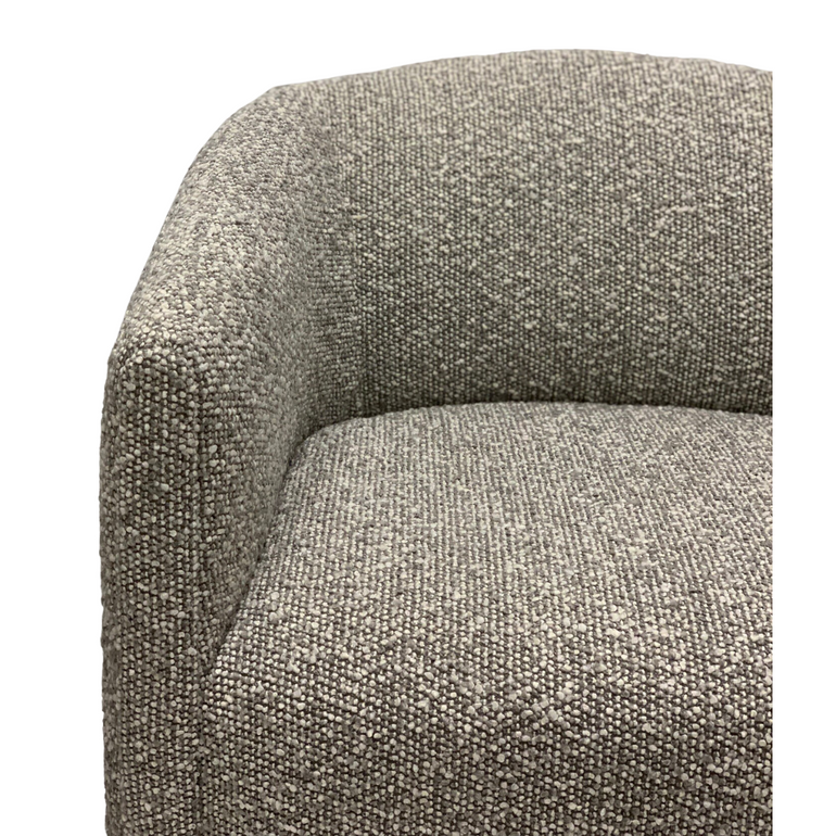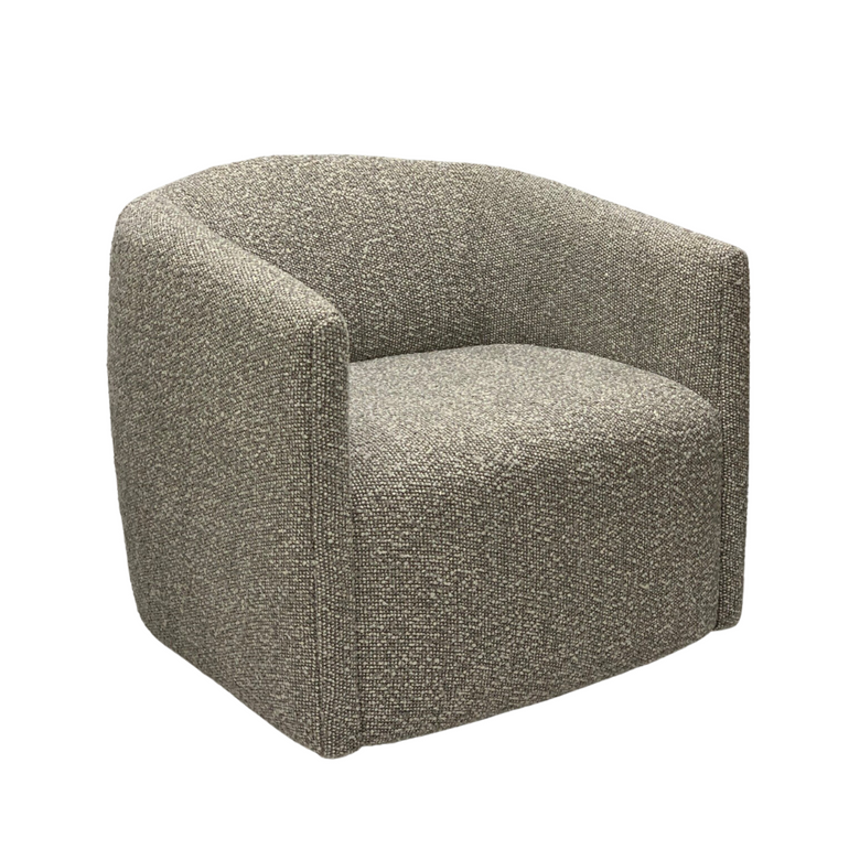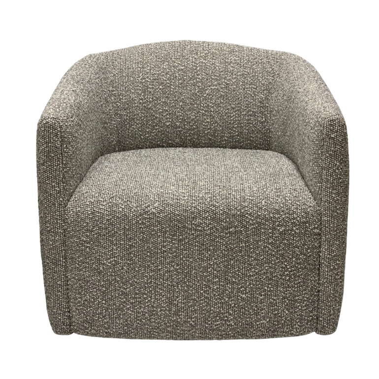 The lines of a traditional barrel back chair are softened for a more modern take in this swivel design. Upholstered in a grey and white boucle fabric