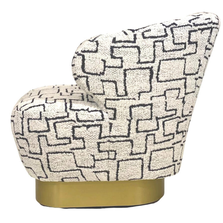 The Lambert Swivel Chair is the height of modernism. Classic and comfortable, it features a natural bronze base with a fully upholstered seat and back.
