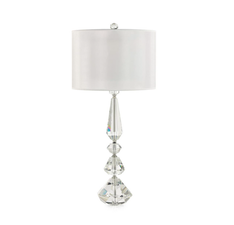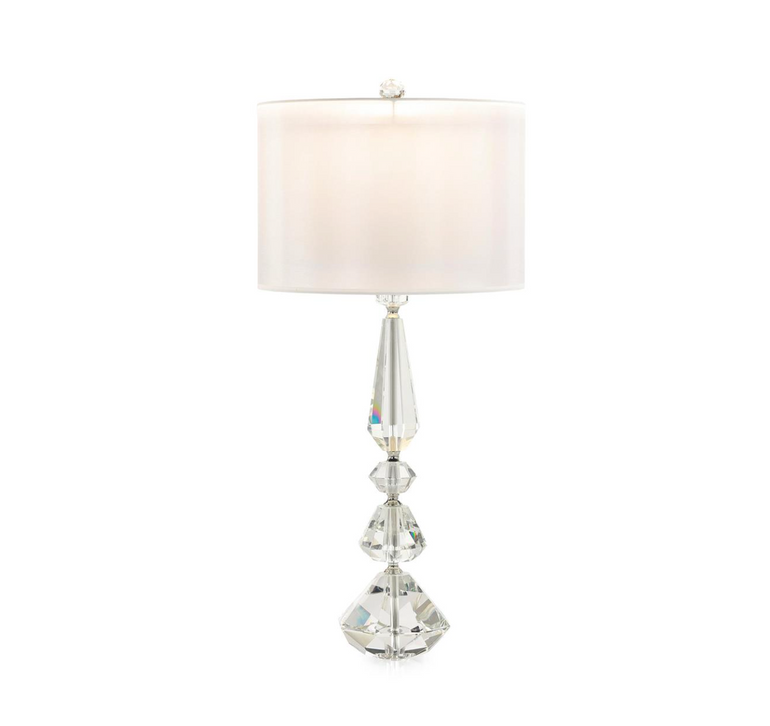 The Balustered Crystal Table Lamp is a stunning work of art made from the skilled hands of our master craftsmen. The piece is hand-carved from clear crystal to showcase an ornate pillar of faceted shapes, matched by a faceted ball finial at the top. The lamp features metal hardware in a Polished Nickel finish, contrasting the crystal-clear motif with cool metallic tones.