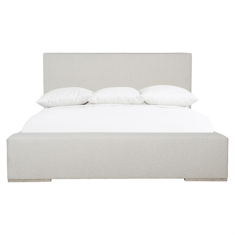The Dunhill panel bed offers a balance of form and function. With a bold upholstered headboard, footboard and side rails, its seamless panels create a flowing, elegant look. The extra wide footboard also doubles as a bench for added seating.