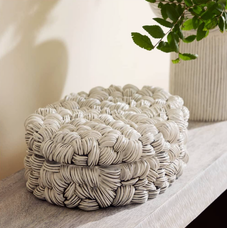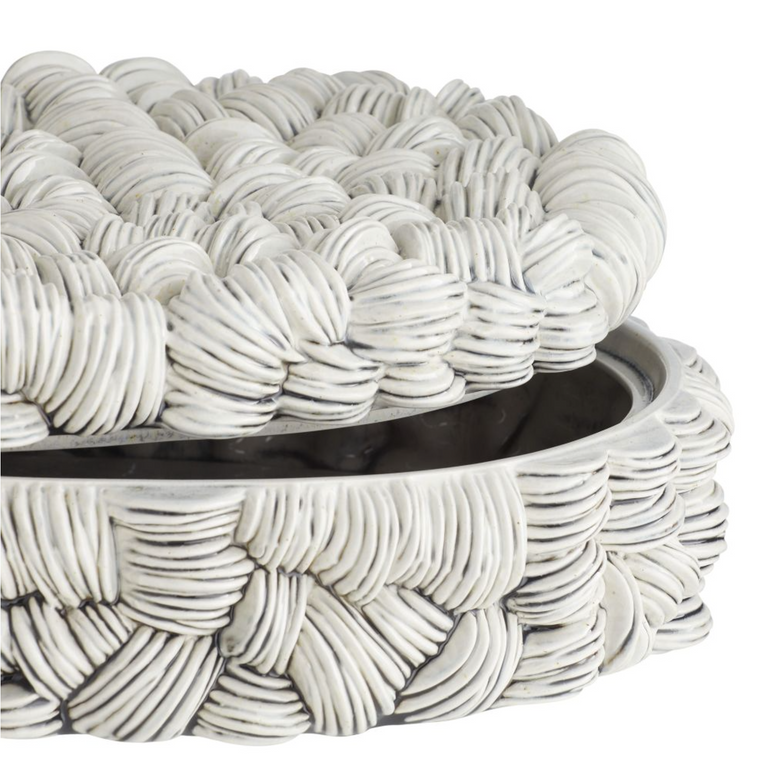 Like sugar icing piped on an elaborate cake, the finish of our sculptural Hampton delivers an eccentric take on the layering trend. Sculptural in shape, this porcelain style is finely crafted by hand scraping each disc allowing the ice reactive glaze to purposefully accent every twist and groove.