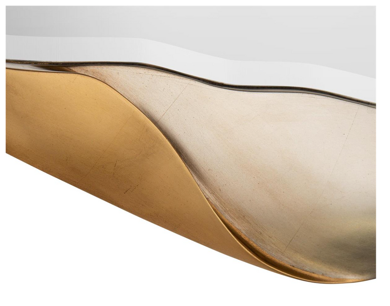 The Inspiration mirror features a unique, dimensional frame with a two-toned look in Exotic Gold and Antique Silver. The frame surrounds a beveled mirror and hangs in vertical or horizontal orientations with French cleats.